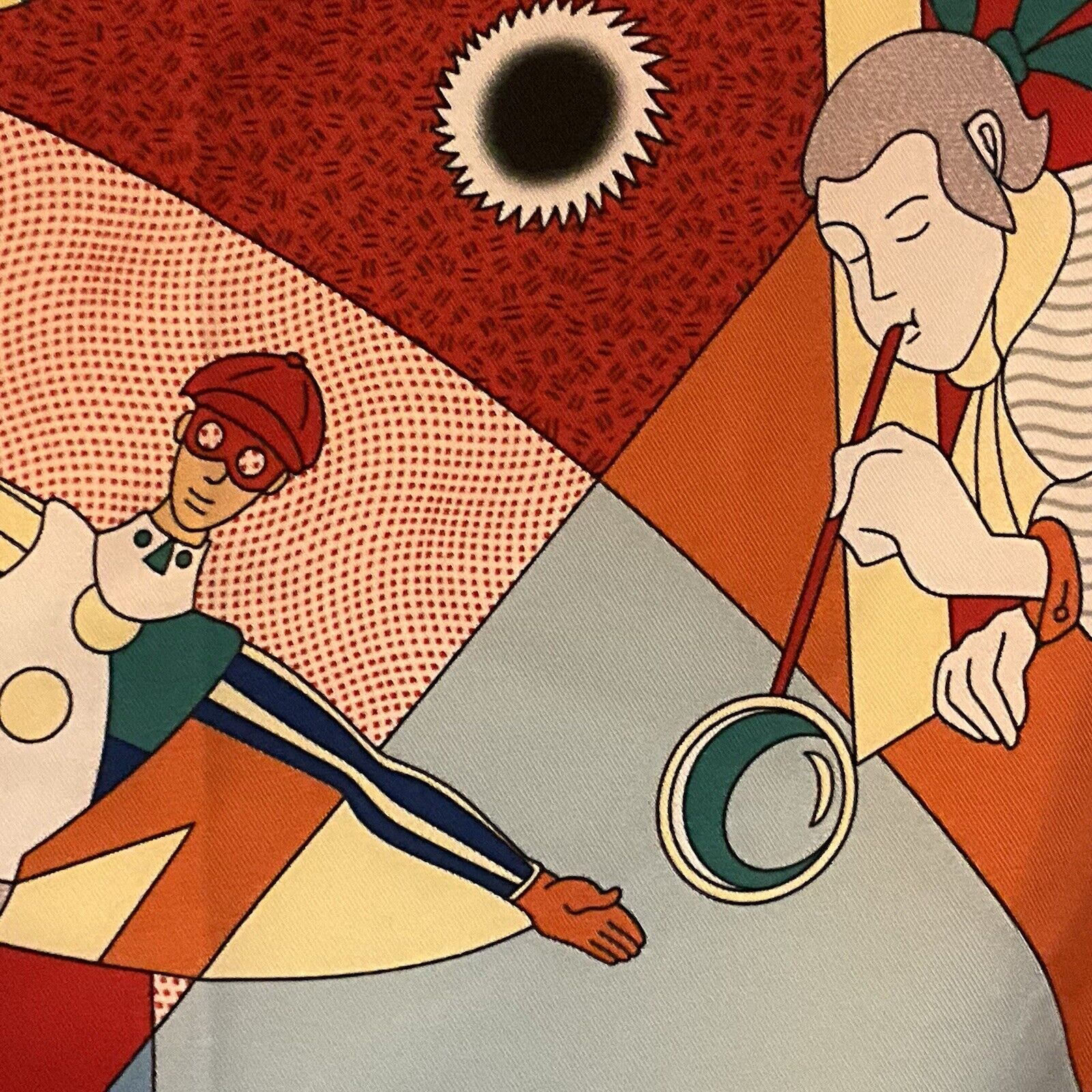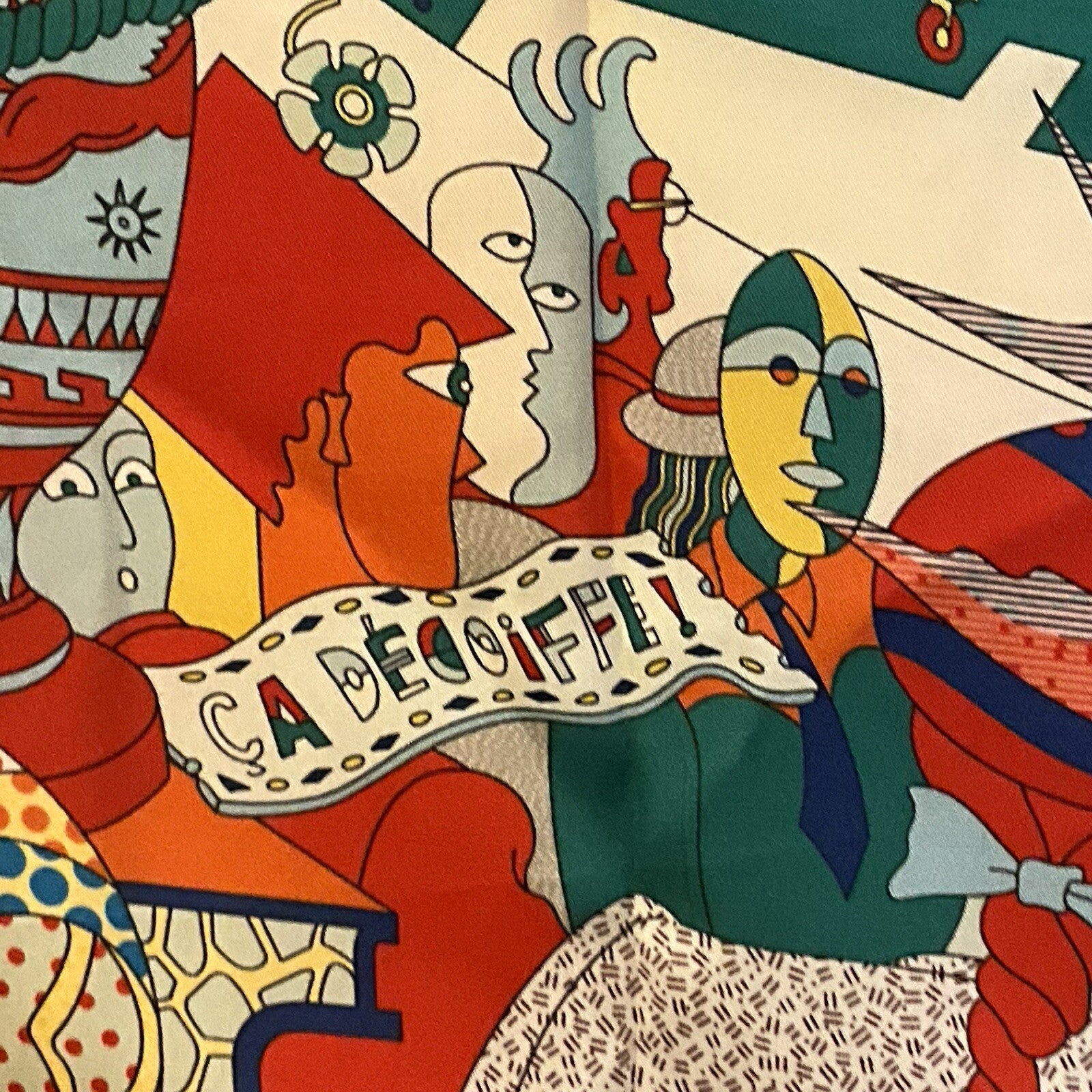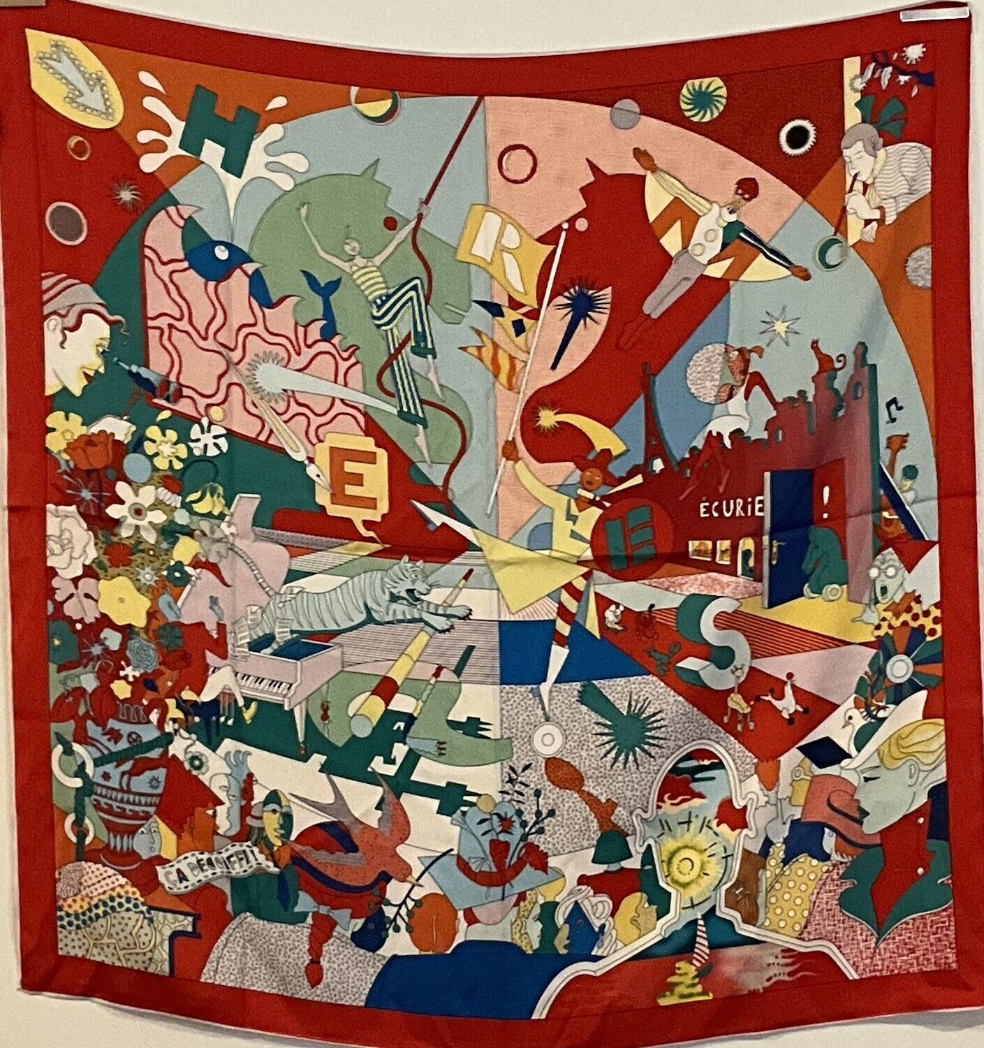 Elevate your style with this beautiful scarf. Measuring 90cm -35 inches, this square scarf is perfect for both men and women. The scarf features a stunning geometric pattern in a vibrant orange color that is sure to stand out.